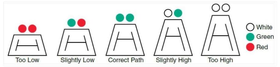 The system consists of two LED CHAPI Light Housing Assemblies (LHAs), visible to the pilot, which display a combination of white, green, and red lights to indicate whether the helicopter is above, below, or on the ideal 6° ±0°15′ glide path. Excessive angle deviations are shown by one or two white lights for too high an approach, and one or two red lights for too low an approach. Each helipad requires two HAPI lights to ensure full visibility and safe approach guidance.